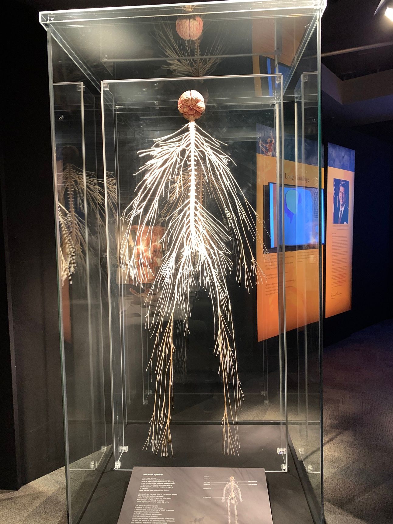 One installation stopped me in my tracks: an actual (I had to keep reminding myself that the things I was seeing were once someone’s actual, actual, actual heart, eye, jaw) nervous system, suspended in space. To see the intricate network through which an actual person took in the world around them was confounding—like a robot looking at its programming, sensing that it’s a profound sight, yet not knowing what exactly to make of it.