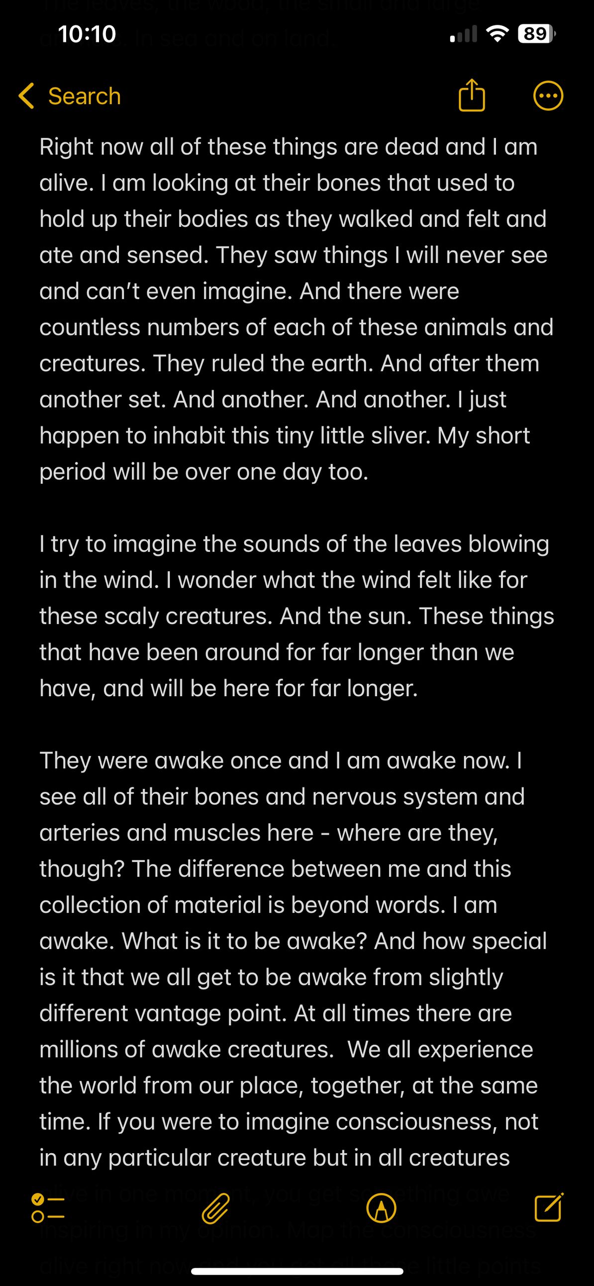 This exhibit is a display of preserved human bodies—bones, muscles, organs—materials that once made up real humans, real lives. I’ve never felt more confronted with the question: what is the relationship between a body and a consciousness?
