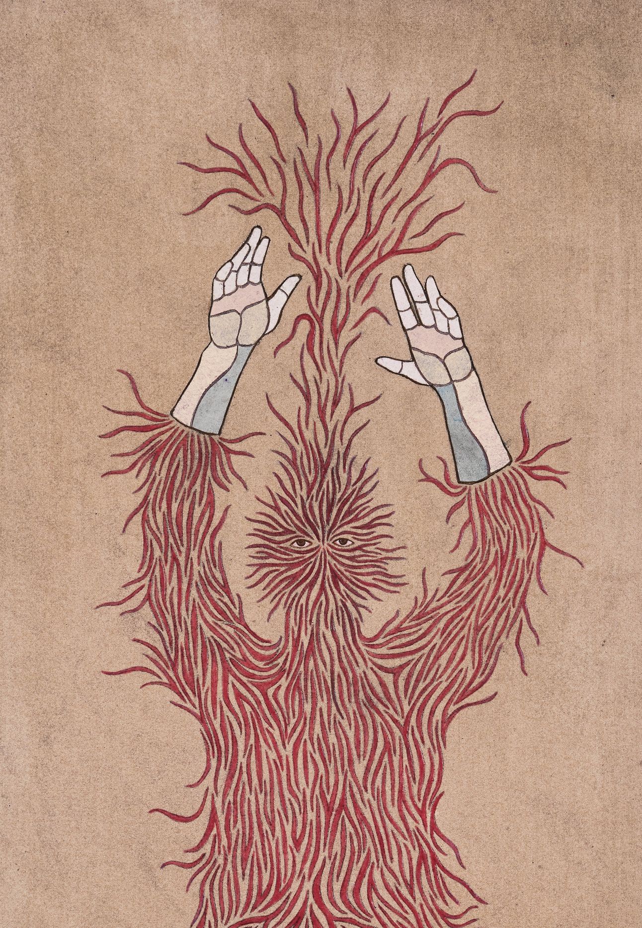 Baeza, who also painted As Bare as Open Flesh and Wayward, just gets it. Where does a human begin and end? What, exactly, are the boundaries of my body?