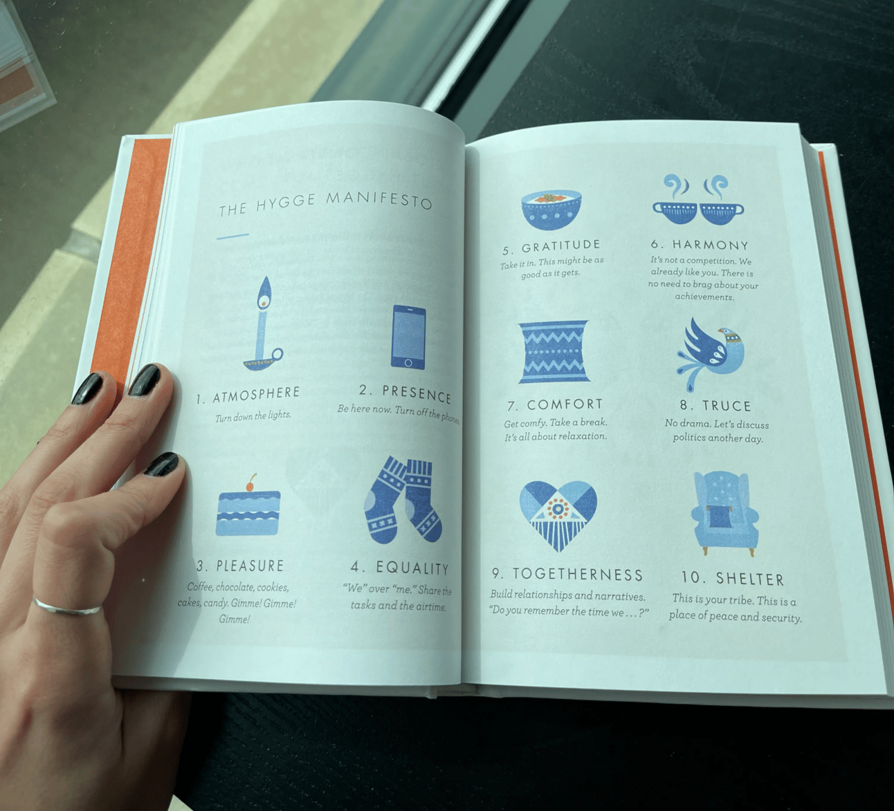 One afternoon at Barnes & Noble, I picked up The Little Book of Hygge, snapped the picture below, and wrote down every single phrase that resonated with me. Hygge—a Danish word for a mood of coziness, warm connection, and a sense of contentment—is all about setting the conditions for (de)light. 🙂