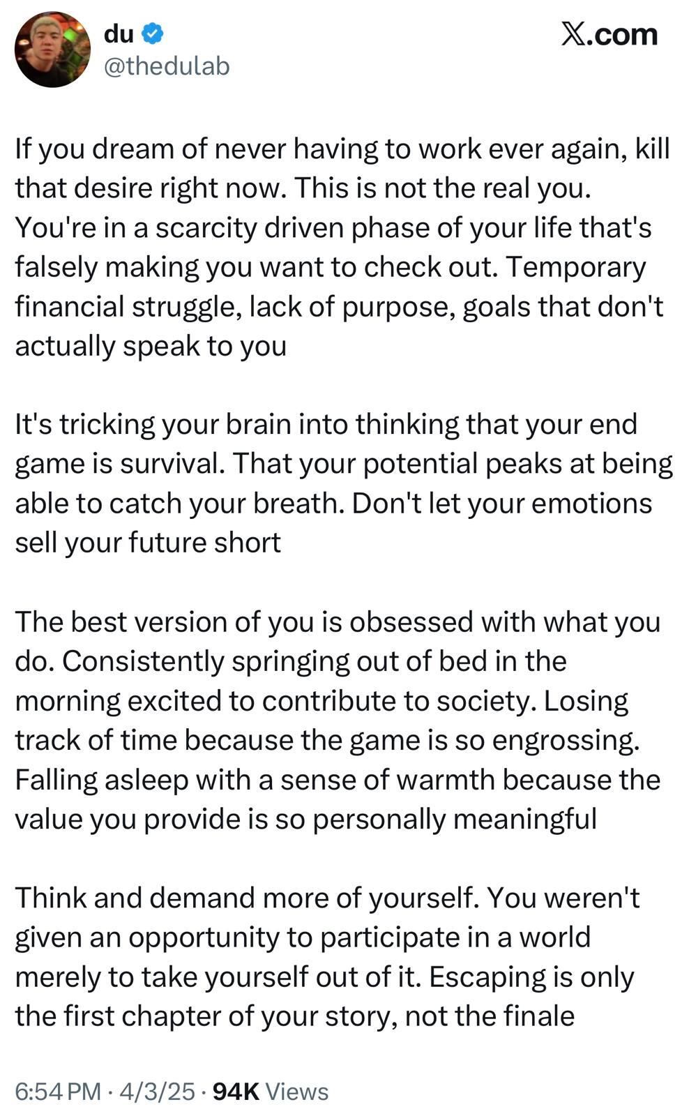 Graeber makes the provocative point that if you don’t adore your work, you’re still in survival mode.